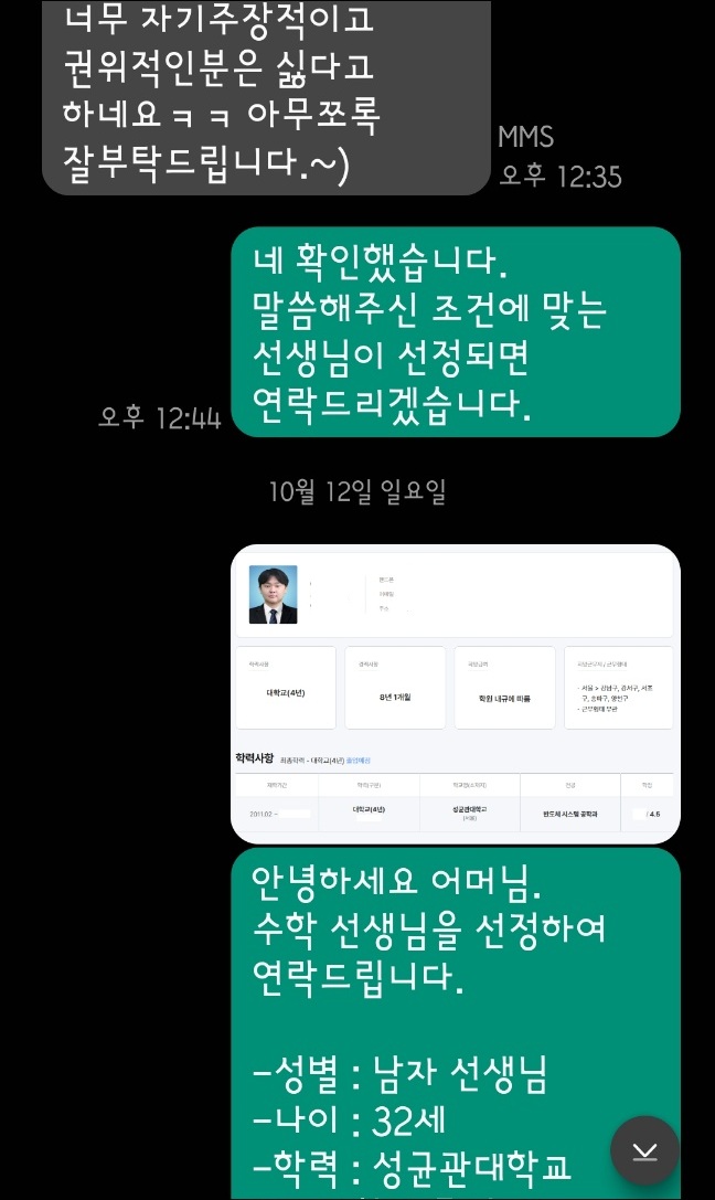 [10월 12일 구로] 고1 여학생. 성균관대 남선생님. 수업 확정