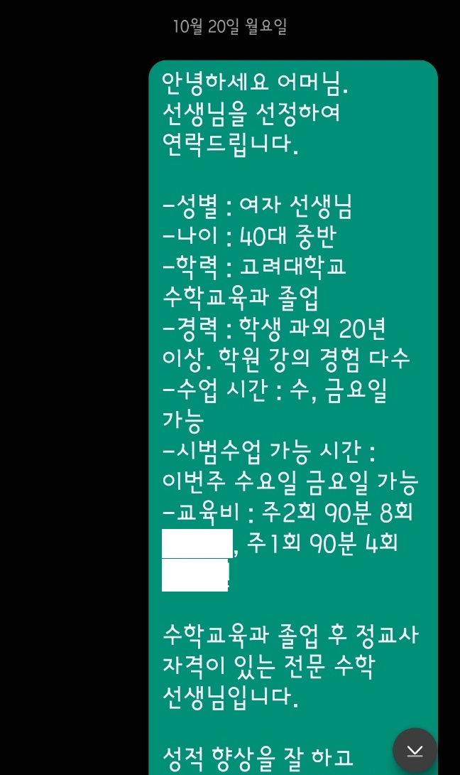 [10월 24일 목동] 중2, 초5 남매. 고려대 여선생님. 수업 확정