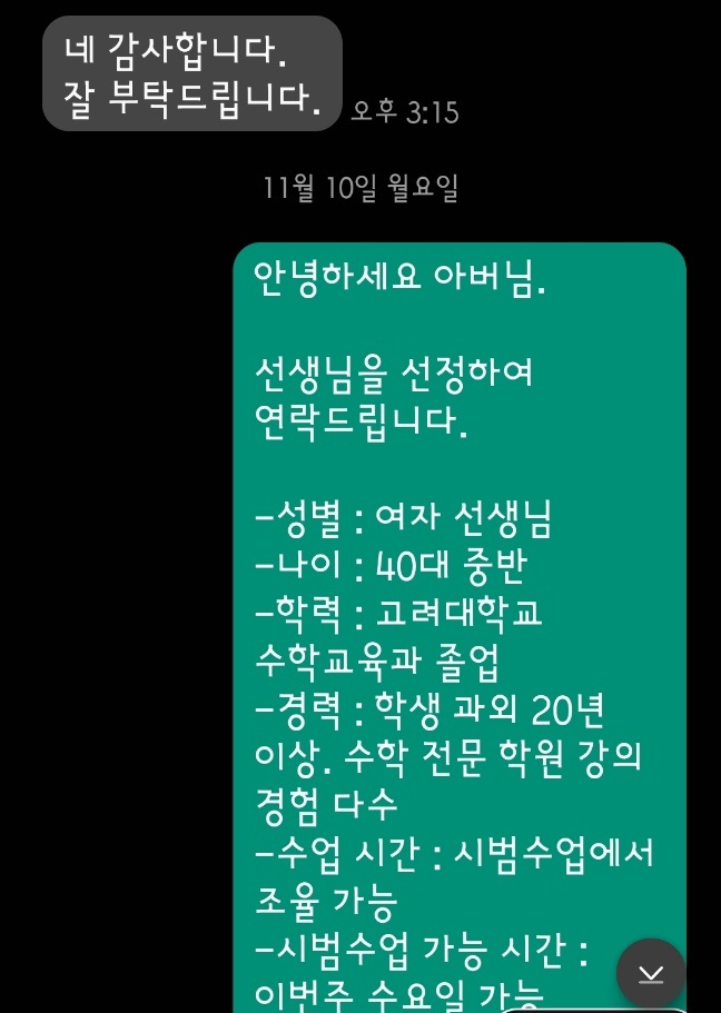 [11월 12일 영등포] 초5 여학생. 고려대 여선생님. 수업 확정
